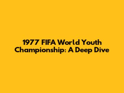 1977 FIFA World Youth Championship: A Deep Dive