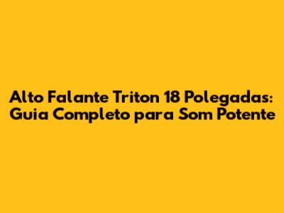 Alto Falante Triton 18 Polegadas: Guia Completo Para Som Potente