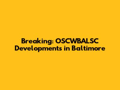 Breaking News: OSCWBALSC Developments In Baltimore
