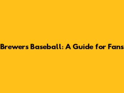 Brewers Baseball: A Guide For Fans