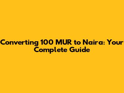 Converting 100 MUR To Naira: Your Complete Guide