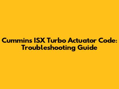 Cummins ISX Turbo Actuator Code: Troubleshooting Guide