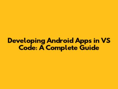 Developing Android Apps In VS Code: A Complete Guide