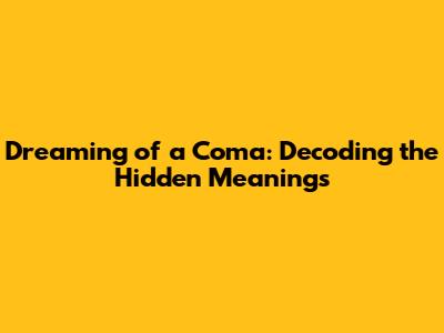 Dreaming Of A Coma: Decoding The Hidden Meanings