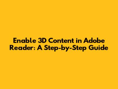 Enable 3D Content In Adobe Reader: A Step-by-Step Guide