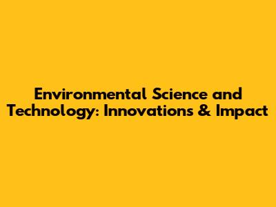 Environmental Science And Technology: Innovations & Impact