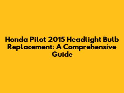 Replacing the headlight bulb on your 2015 Honda Pilot is a simple maintenance task that you can easily do yourself with a few basic tools and a little bit of know-how. By following the steps outlined in this guide, you can save money on labor costs and ensure that your headlights are always in good working condition. Remember to always prioritize safety and take the necessary precautions when working on your vehicle. With a little patience and attention to detail, you can keep your Honda Pilot shining bright and safe on the road.