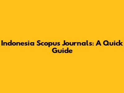 Indonesia Scopus Journals: A Quick Guide