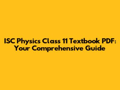 ISC Physics Class 11: Your Guide To Textbook PDFs