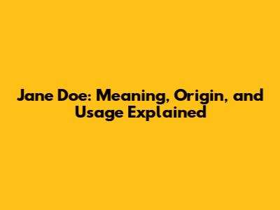 Jane Doe: Meaning, Origin, And Usage Explained