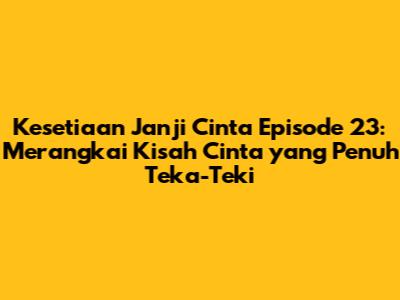 Kesetiaan Janji Cinta Episode 23 – Hey guys! Mari kita selami lebih dalam lagi episode terbaru dari drama yang bikin baper, Kesetiaan Janji Cinta. Kali ini, kita akan membahas semua hal menarik yang terjadi di episode 23. Siapkan tisu, karena emosi kalian akan diuji! Episode ini penuh dengan kejutan, pengungkapan rahasia, dan tentu saja, lika-liku cinta yang semakin rumit. Pasti pada penasaran kan bagaimana kelanjutan kisah cinta yang penuh janji ini? Yuk, kita bedah bersama!
