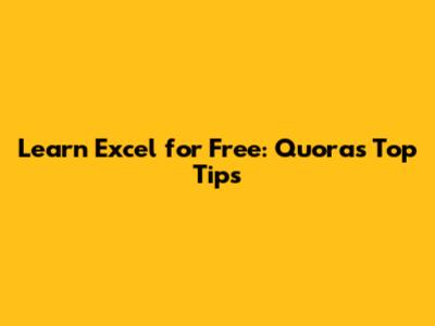 Learn Excel For Free: Quora's Top Tips