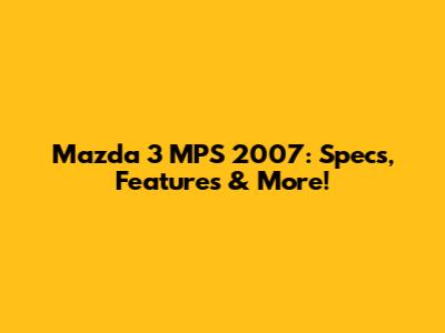 Mazda 3 MPS 2007: Specs, Features & More!