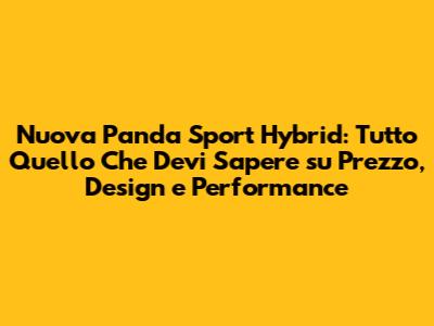 Ciao a tutti, appassionati di motori! Siete curiosi di scoprire tutti i segreti della nuova Panda Sport Hybrid? Siete nel posto giusto! In questo articolo, esploreremo in dettaglio il prezzo, le caratteristiche, il design, le prestazioni e le offerte disponibili per questa affascinante city car ibrida. Preparatevi a un viaggio completo nel mondo della Panda Sport Hybrid, con un focus particolare su cosa la rende unica e perché potrebbe essere la scelta perfetta per le vostre esigenze di mobilità urbana. Pronti? Partiamo!