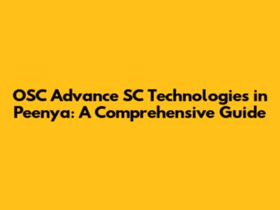 OSC Advance SC Technologies In Peenya: A Comprehensive Guide