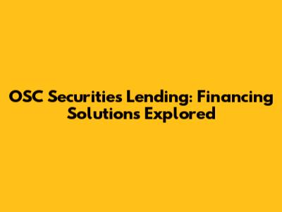 OSC Securities Lending: Financing Solutions Explored