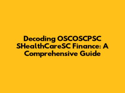 Hey guys! Ever stumbled upon the term OSCOSCPSC SHealthCareSC Finance and felt like you've entered a whole new world of jargon? You're not alone! This term might seem like a jumble of letters at first, but don't worry, we're here to break it down in a way that's super easy to understand. This comprehensive guide will walk you through what it means, why it matters, and how it all fits together in the world of healthcare finance. So, let's dive in and unravel this mystery together!