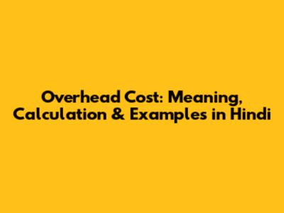 Overhead Cost: Meaning, Calculation & Examples In Hindi