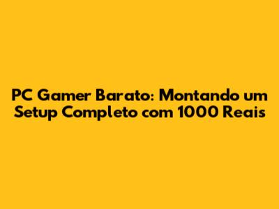 PC Gamer Barato: Montando Um Setup Completo Com 1000 Reais