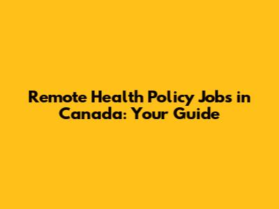 Remote Health Policy Jobs In Canada: Your Guide
