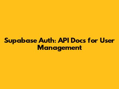 Supabase Auth: API Docs For User Management
