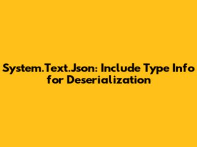 When you serialize objects, the default behavior of System.Text.Json is to only include the properties of the object and their values. It doesn't include any information about the type of the object itself. This is fine for simple scenarios where you know the exact type of the object you are deserializing, but it becomes problematic when you are dealing with more complex scenarios involving inheritance or polymorphism. In these cases, you need to include additional information in the JSON to tell the deserializer what type of object to create. This can be achieved by adding a special property to the JSON that indicates the type of the object. This property is typically named something like $type or @type, and its value is a string that represents the fully qualified name of the type. When the deserializer encounters this property, it uses the type name to create an instance of the correct type.