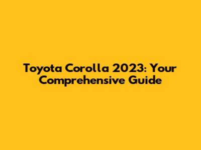 Toyota Corolla 2023: Your Comprehensive Guide
