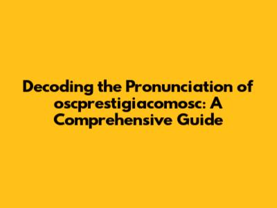 Hey everyone! Ever stumbled upon "oscprestigiacomosc" and wondered how in the world you're supposed to say it? You're not alone! It's a bit of a mouthful, right? This guide is here to break it down for you, making sure you can pronounce oscprestigiacomosc with confidence. We'll dive into the syllables, provide phonetic breakdowns, and even offer some helpful tips to make it stick in your memory. So, let's get started and unravel this pronunciation puzzle together!