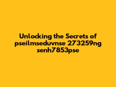 Unlocking The Secrets Of Pseilmseduvnse 273259ng Senh7853pse