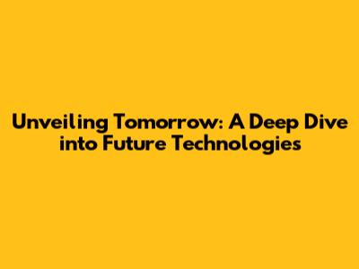 Unveiling Tomorrow: A Deep Dive Into Future Technologies