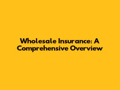 Wholesale Insurance: A Comprehensive Overview