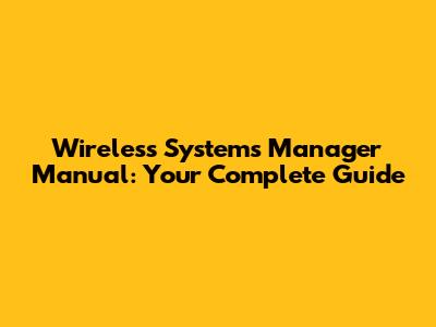 Wireless Systems Manager Manual: Your Complete Guide