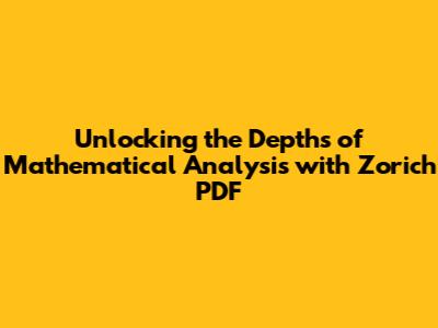 Zorich Mathematical Analysis PDF: A Comprehensive Overview